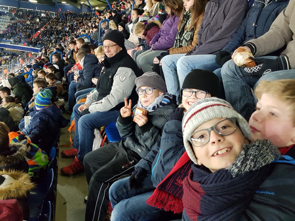 47 enfants de l'ASV des catégories U8 à U13 se sont rendus à Caen pour suivre le match de ligue 1 comptant pour la 18ème journée du championnat entre le SM Caen et l' EA-Guimgamp. Pour beaucoup d'entre eux c'était une première dans un grand stade. Un score de 0 à 0 avec peu d'occasion, mais un superbe feu d'artifice à la fin pour cloturer l'année au stade Michel d'Ornano. Les enfants étaient ravis. Leur bon comportement est à souligner. Merci aux dirigeants du club qui ont assuré ce déplacement et un grand merci à la maman d'Esteban pour nous avoir fait des crêpes en très grande quantité.