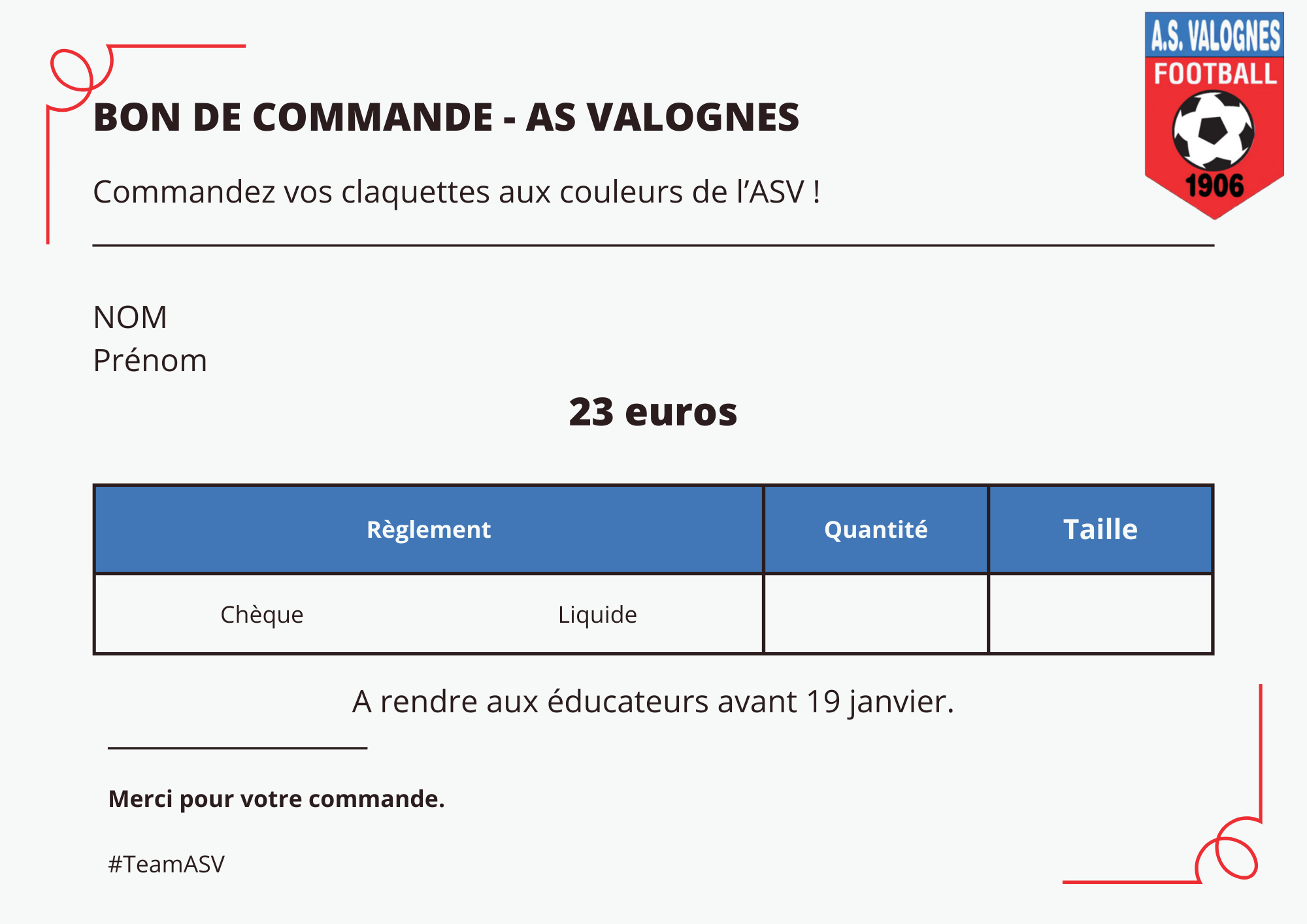 Télécharger le document pdfBon de commande claquettes ASV