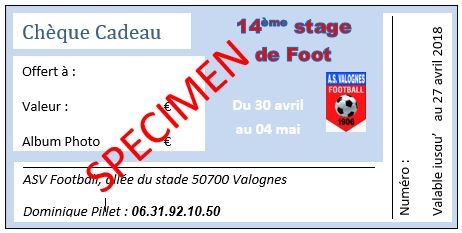 Chèque cadeau 14 ème stage de pâques