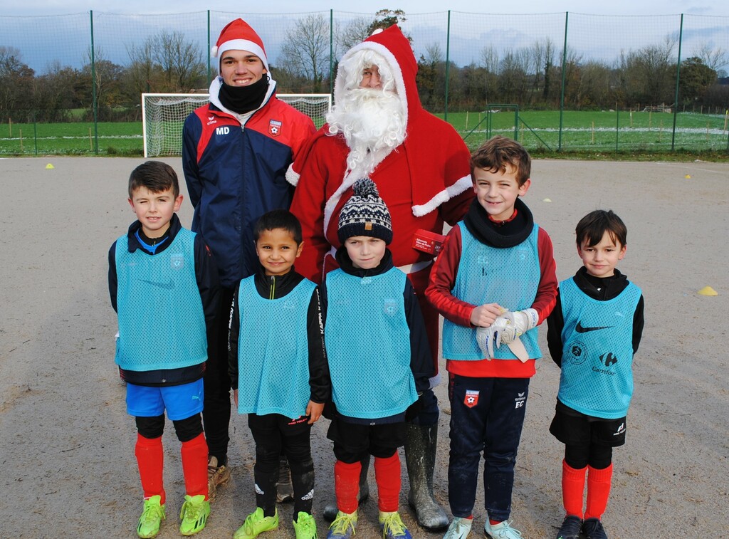 Mercredi matin le père noël est venu déposer au club-house des friandises pour ouvrir les festivités de noël. Ensuite il s'est rendu sur les terrains rencontrer les minots du club, avant de continuer sa route vers d'autres écoles de foot de la région.
